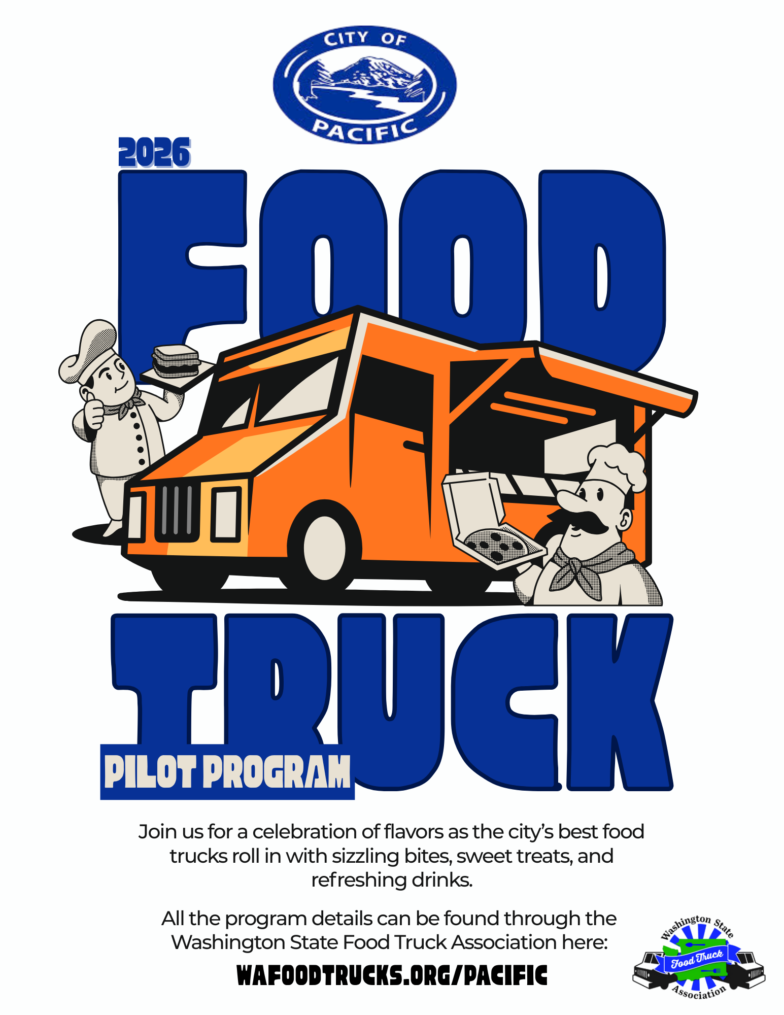 The WSFTA is running a 1-year food truck pilot program with the City of Pacific to test the viability of multiple vending locations within the city. Participating vendors must be current WSFTA members, must agree to the Pilot Program Terms & Conditions (see below), and can apply by contacting the association.